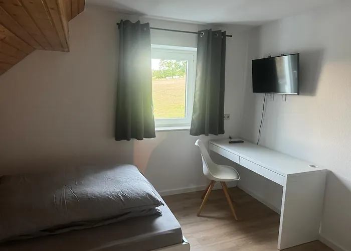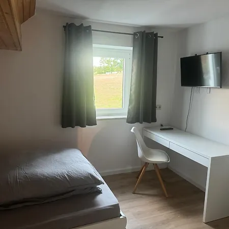 Apartmán Apartmán Gemuetliches Zimmer Im Gruenen nabízí kuchyňku i pokoje s pracovním stolem, přístrojem na přípravu kávy a čaje, TV s plochou obrazovkou se satelitními kanály. Apartmán se nachází asi 3 km od Fulda Jossa, a je také 3,1 km od Campingplatz Nieder-Mooser-See.